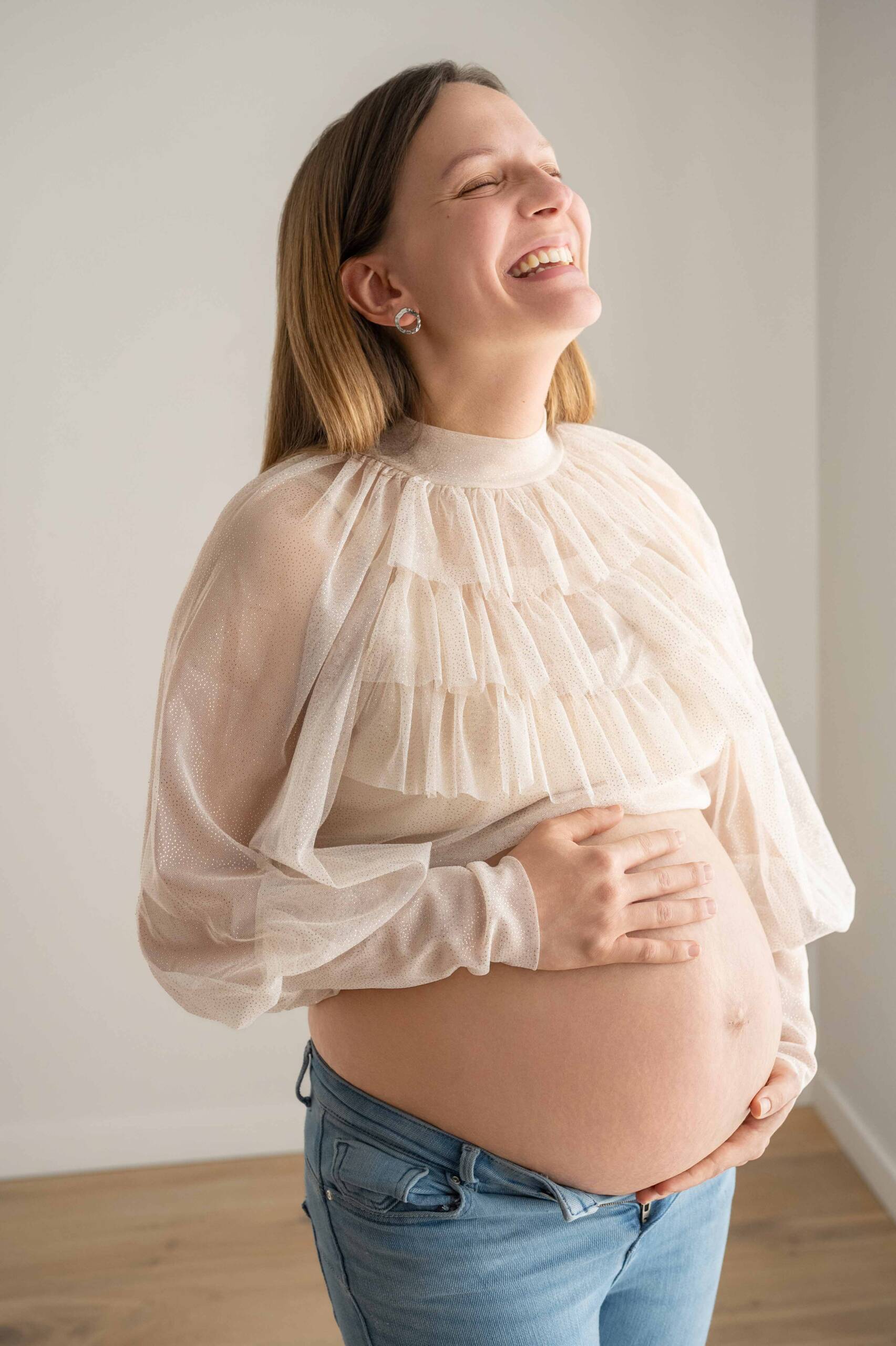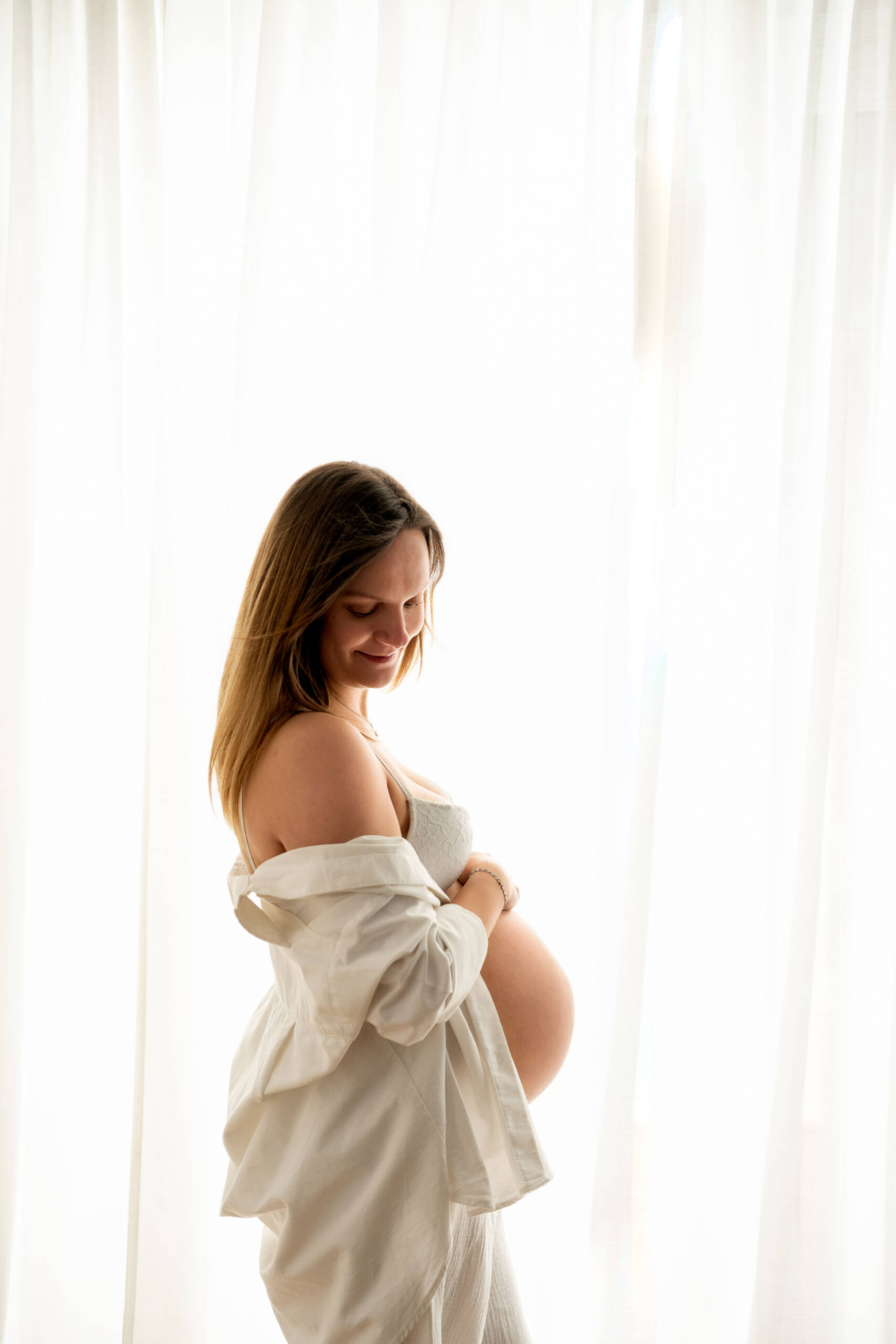 C’est exactement pour ça que le studio dispose d’un dressing grossesse, pensé pour vous enlever cette charge mentale dès la préparation de votre séance. Au studio, vous avez aussi accès à des tenues sélectionnées spécialement pour la photo.